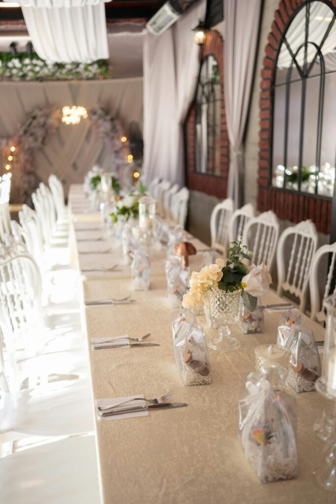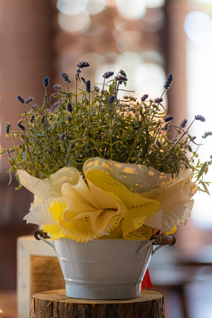 Potted plants are one of the most practical decor choices for a rustic indoor garden reception. Small potted herbs like rosemary or thyme, or compact plants like succulents and ferns, work beautifully as centerpieces or accents throughout the venue. They add a genuine garden feel without relying entirely on cut flowers.