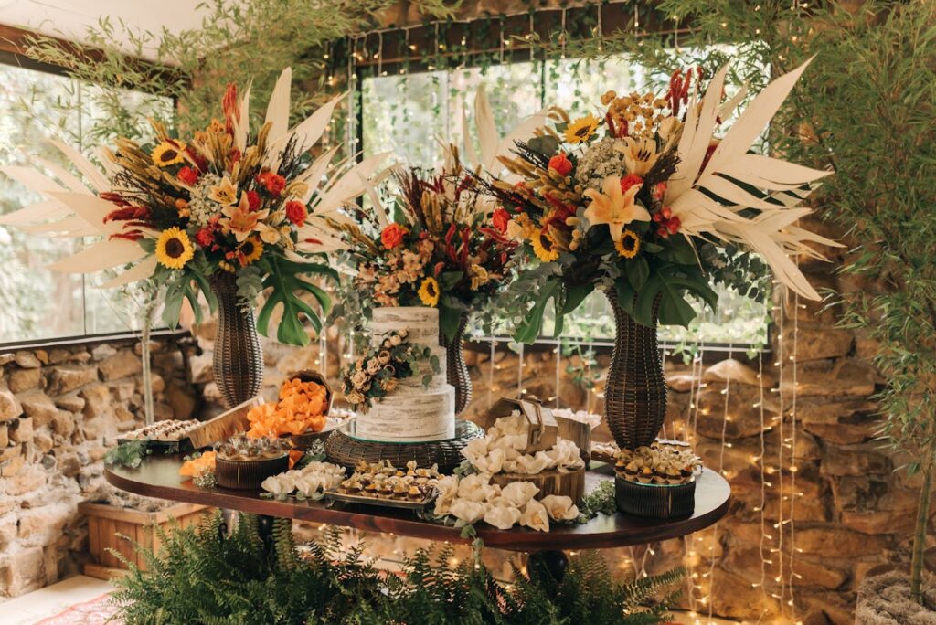 Wildflower arrangements are a perfect fit for a rustic indoor garden reception because they look like they were gathered rather than designed. Sunflowers, daisies, lavender, and chamomile arranged loosely in mason jars or small vases bring a natural, garden-fresh feel to your tables. They are not stiff or overly structured, which is exactly what this style calls for.