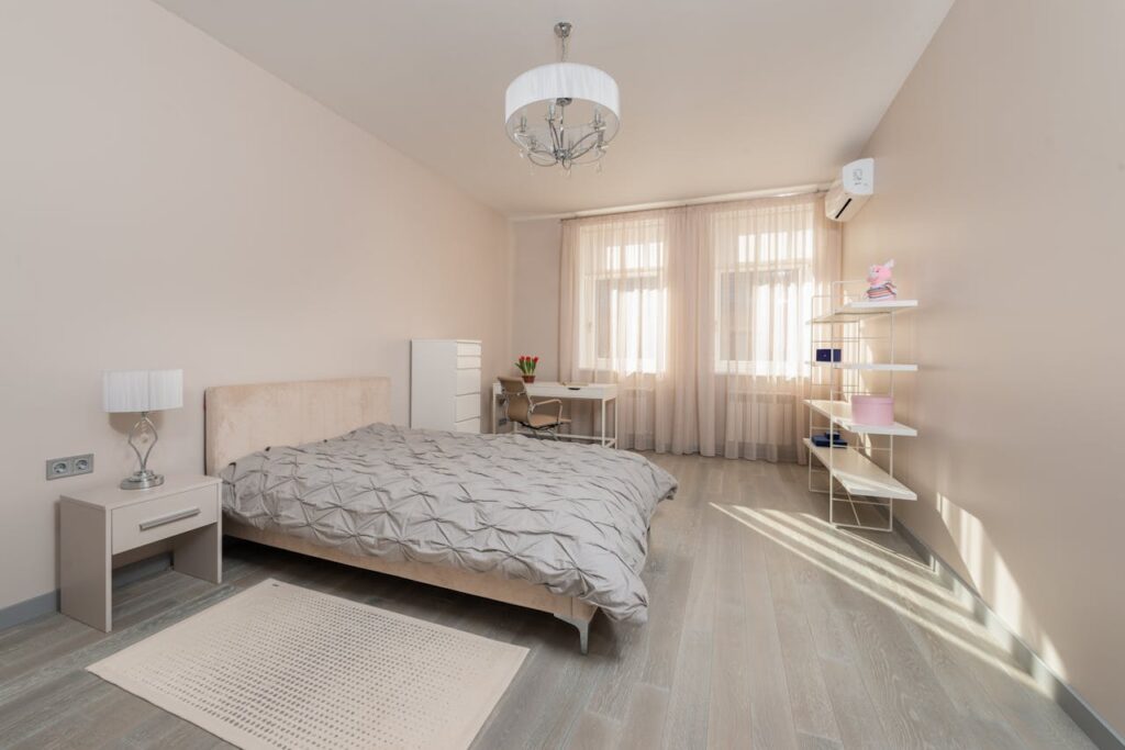 Natural flooring or a tatami-inspired look gives a Japandi bedroom a peaceful, earthy base. Light wood floors or woven floor mats both work well for this effect. The goal is to keep the floor simple and close to nature.