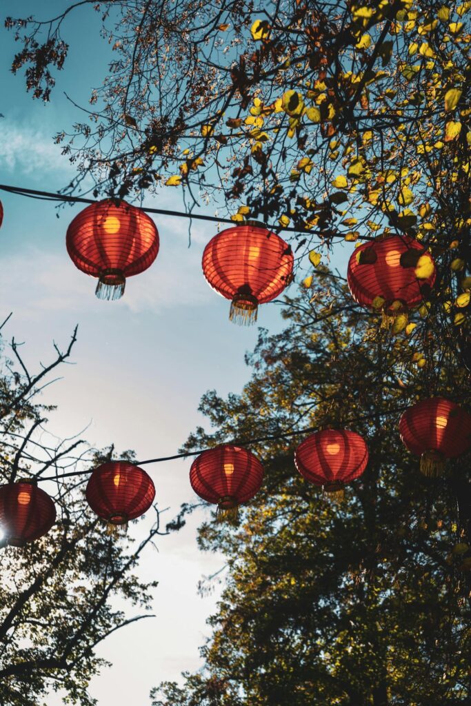 17. Paper Lanterns Hanging in Trees