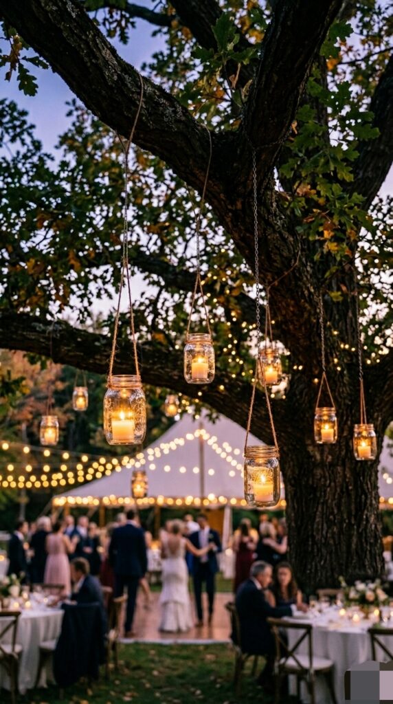 5. Hanging Jars With Candles on Trees